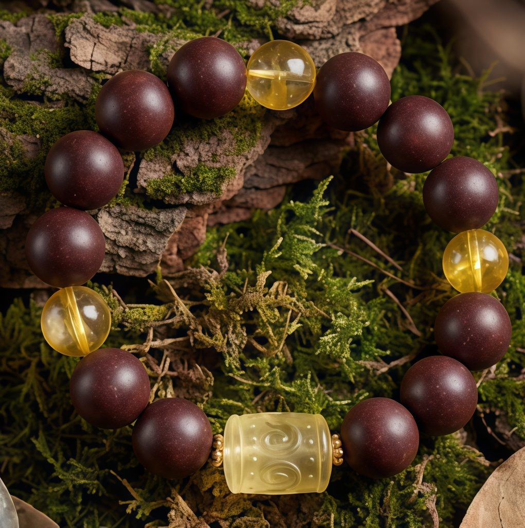 This bracelet contains 100% natural botanical and resinous materials. Its scent is a warm, gently sweet, and grounding blend that matures gracefully with wear.