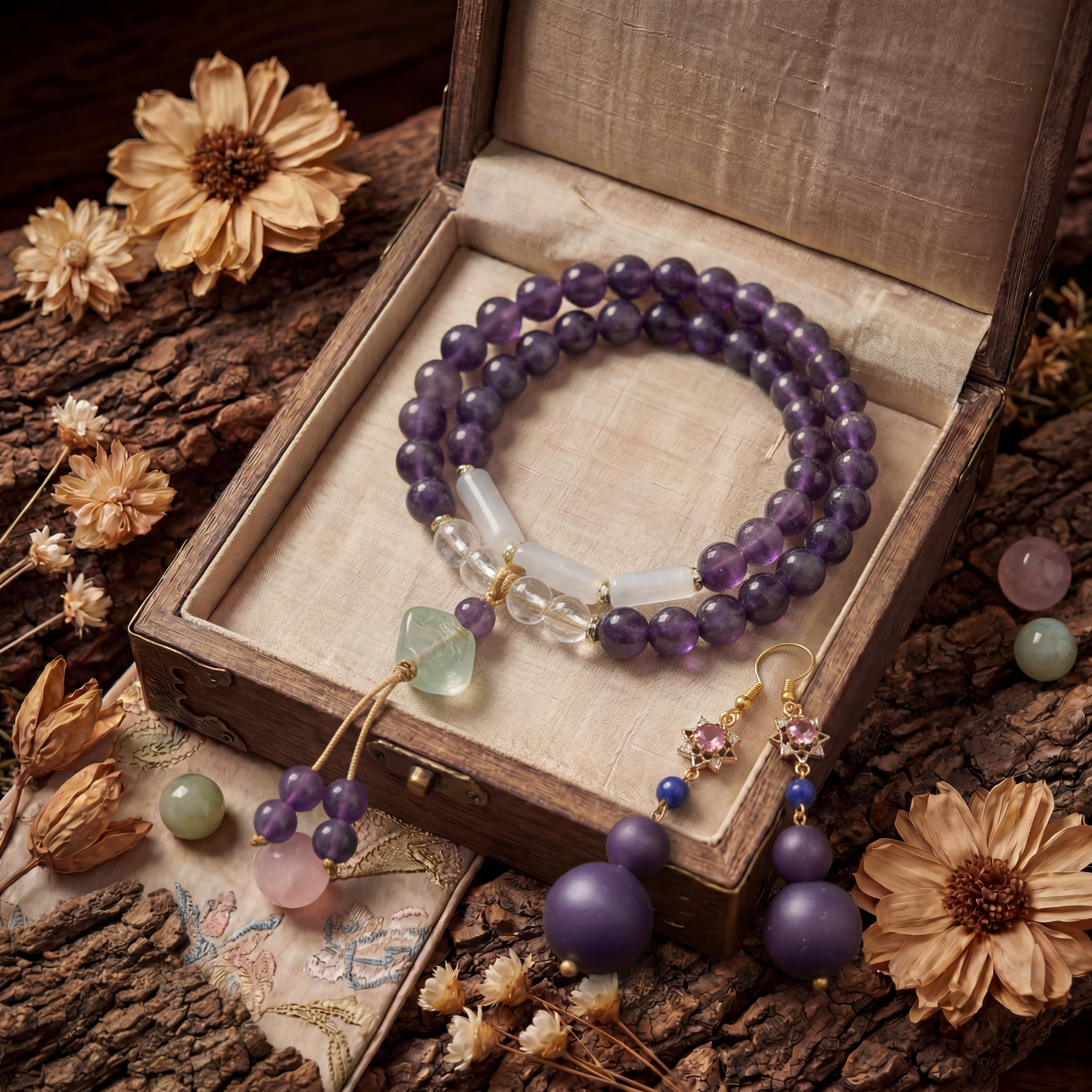 The inner landscape is not always gentle. There are shadows to face, fears to meet, griefs to acknowledge. Wear this bracelet as a talisman of safe passage, trusting that the sacred essences it contains have guided countless travelers through these same territories.
