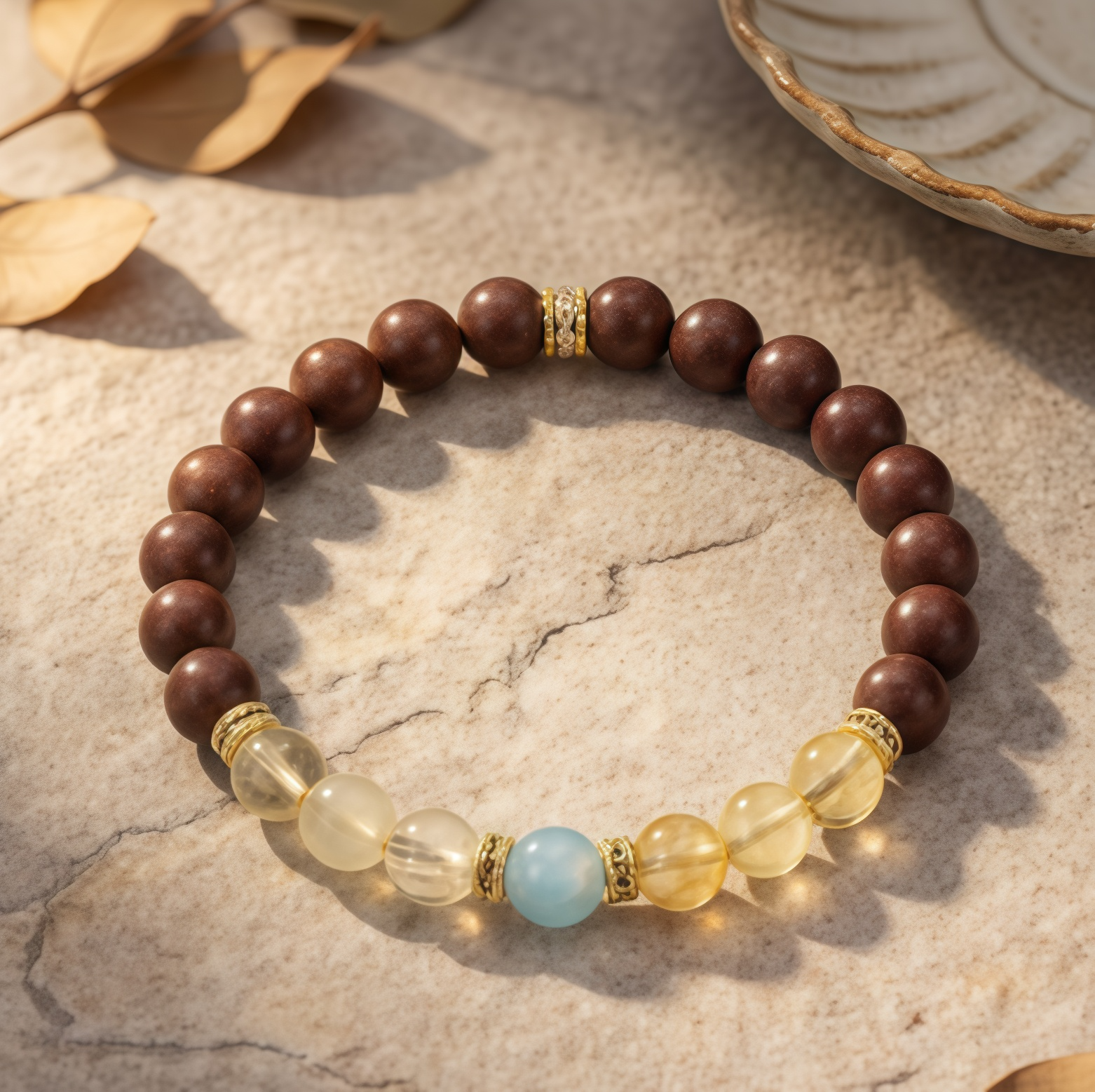 This bracelet takes as its essence the serene elegance of the Orchid, the “gentleman among flowers,” capturing its rare fragrance and blending it with select natural aromatics that move Qi, open the senses, and calm the spirit. The Orchid receives the pure, gentle energy of heaven and earth; its scent is subtle yet far-reaching, its nature balanced and never drying. This piece creates an energy field that is “clear but not cold, fragrant but not showy.” It focuses on gently dispersing the stagnation of Liver Qi and constriction in the chest caused by worry, stress, or worldly agitation, guiding the heart-mind back to a peaceful, expansive, and lucid state—like a “quiet valley”—thereby restoring inner Calm and composed and clear perception.