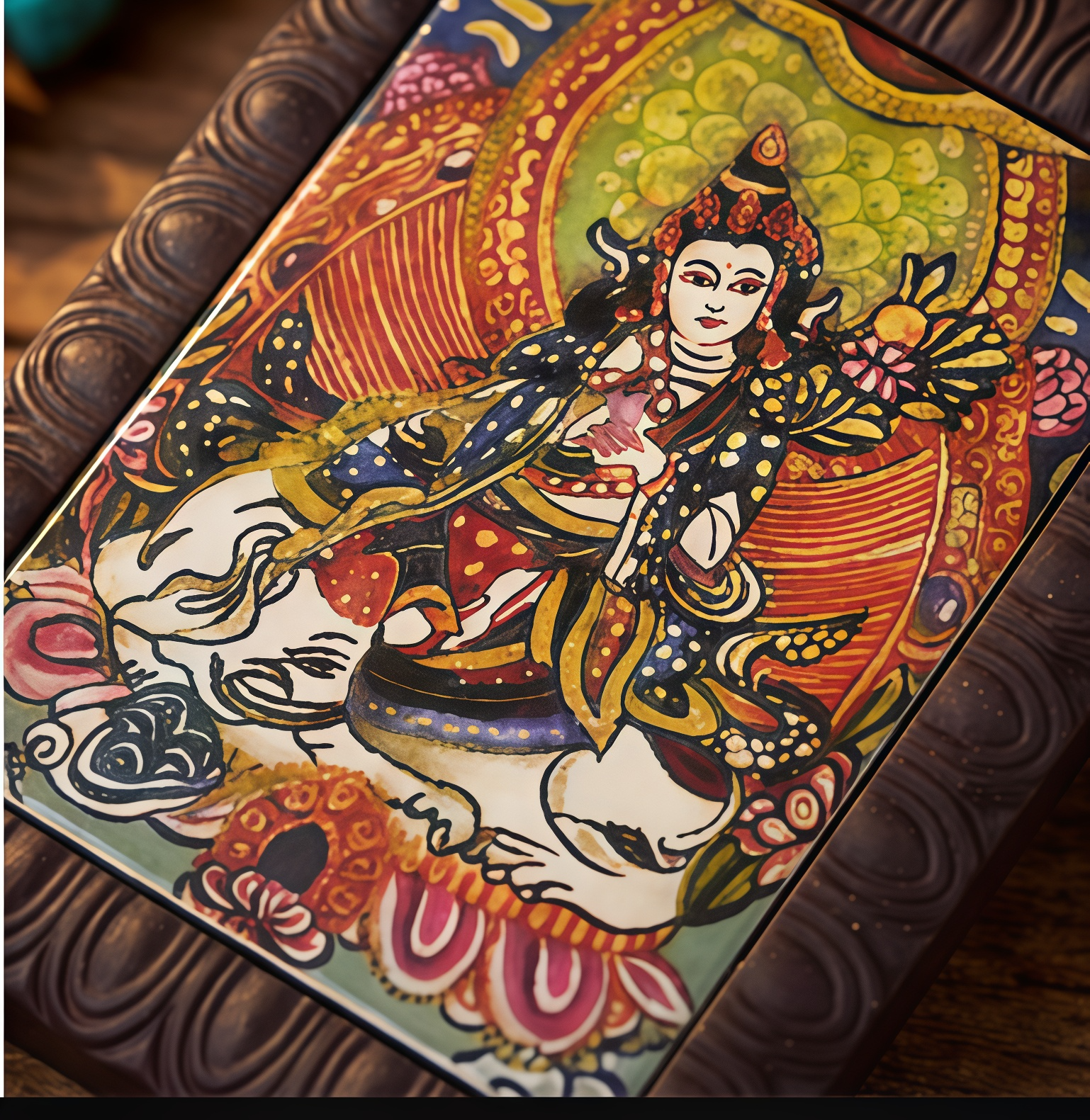 Respectful Regard: The depiction draws from Buddhist iconography. Please handle it with care and respect, keeping it in a clean and considered state.