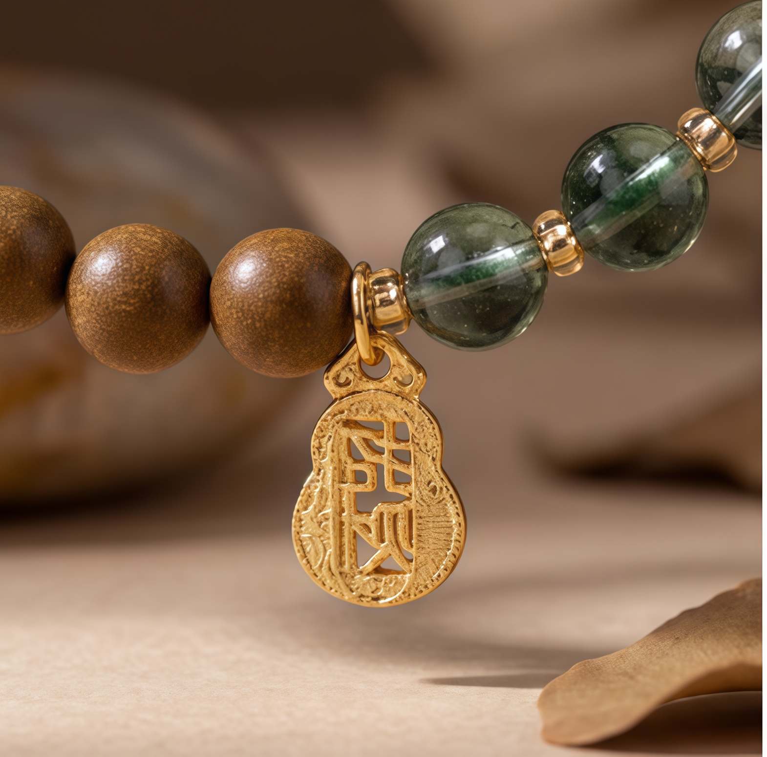 Green Phantom Quartz Beads (Wood): These beads contain captivating internal landscapes of green mineral inclusions (the “phantom”). Green is the color of the Wood element, symbolizing vital life force, upward growth, flexibility, and benevolent expansion. The phantom within represents the hidden potential and the enduring spirit of nature’s resilience. In the cycle of the phases, Wood nurtures and supports Earth, making this a harmonious and fortifying combination.